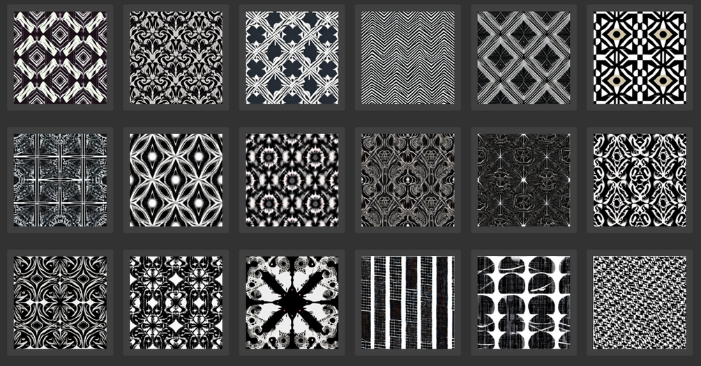 Included is 100 pngs of seamless patterns of various styles varying from white to black and all shades of grey inbetween. Most of these are AI generated.